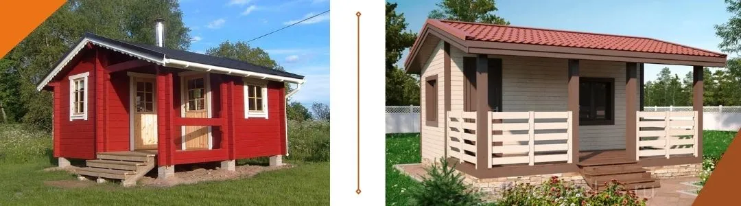 Подобные строения пользуются особой популярностью даже в том случае, если на участке уже есть дом. Их можно использовать для размещения гостей, в качестве места для отдыха или рабочего кабинета. В таких строениях часто размещают летние кухни, устанавливают дополнительные душевые кабинки. При выборе материала стоит учитывать, что в межсезонье такой домик отапливаться не будет. Классическое решение — использование для строительства нестроганого бруса. Более современная и практичная альтернатива – террасная доска из древесно-полимерного композита.